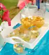 Cleaning, washing and sorting fruit. Stone cherries and plums. Briefly blanch the apricots with boiling water, peel the skin, quarter and stone them. Layer the fruits with the candy in a rum pot and pour over the rum. The fruits must be covered. Close the rum pot and let it stand for a few weeks. Fill into small glasses as a gift