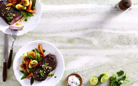 Arrange steaks with salsa and vegetables on plates. Garnish with parsley.