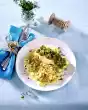 For the Chimichurri, wash the lemon hot, grate it dry and peel the peel thinly with a pestle. Halve the fruit and squeeze the juice. Peel garlic. Wash parsley and oregano, shake dry and pluck leaves from the stalks. Chop the prepared ingredients finely and mix with lemon juice, 4 tbsp. oil and 3 tbsp. vinegar. Season to taste with salt and chili flakes