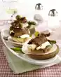 Fry the bread cubes in hot butter until golden brown and remove. Heat oil and sauté onions in it. Sprinkle with sugar and caramelize lightly while stirring. Fry the thyme and olives briefly. Season with pepper and let it cool down.