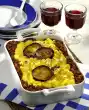 Photo u.) and dab dry. Rub with salt and pepper and place on the fat pan. Spread the paprika-almond butter on the meat and press well. Spread carrots and diced onion around it.