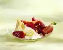 Preparation: Boil 100g dried apricots in plenty of water for 3 minutes, rinse in cold water and cut into cubes of about 0.5 cm. Fry 100g bacon, 100g onions and 100g mushrooms in butter, let cool down.
