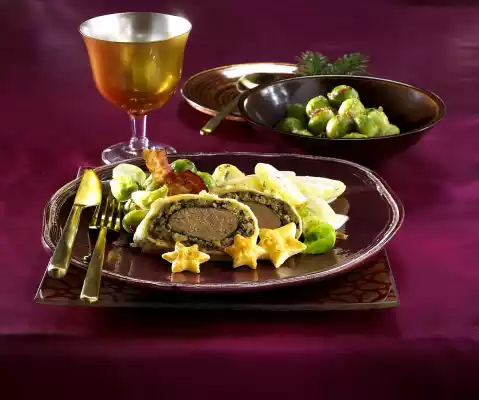 Saddle of venison in puff pastry with béchamel potatoes