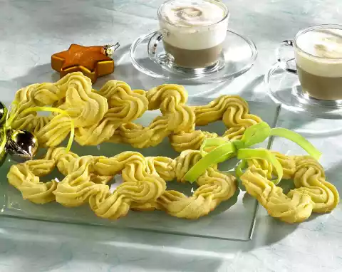 Pour the dough into a piping bag with a medium-sized star-shaped spout. Spray stars onto a baking tray lined with baking paper. Bake in a preheated oven (electric: 200 °C/ gas: level 3) for about 10 minutes.
