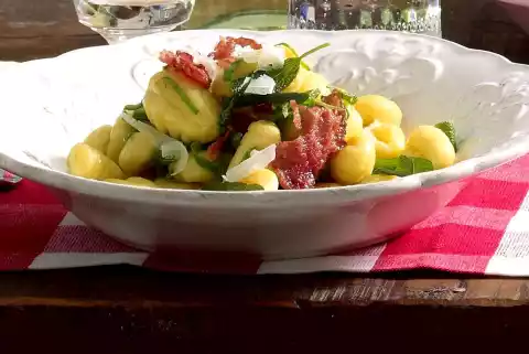 Steam pepperoni and sage in hot frying fat for about 1 minute. Add butter and froth up briefly. Warm the gnocchi in it while tossing. Break the coppa into pieces and fold into the gnocchi. Season with salt and pepper.