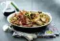 Clean the peppers, cut lengthwise, remove seeds, wash and cut into strips. Wash the sage, shake dry and pluck the leaves. Heat the oil in a large frying pan, fry the coppa in it until crisp and drain.