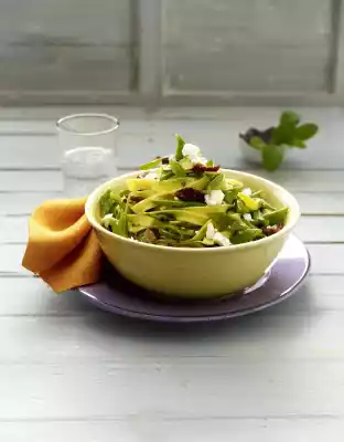 Meanwhile, prepare the pasta in boiling salted water according to the instructions on the packet. Season beans with salt and pepper. Drain the pasta and add to the beans. Mix the noodles and vegetables. Arrange in a bowl, crumble cheese on top and garnish with remaining sage.