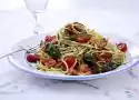 Cook the pasta in 3-4 l boiling salted water according to the instructions on the packet until al dente. In the meantime peel and finely dice the onion. Heat 1 tsp. oil in a pot. Fry the onion for about 2 minutes until transparent. Add tomatoes, bring to the boil and simmer for about 3 minutes.