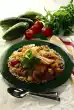 Wash the fish, dab dry. Season with salt and pepper. Wash, clean and slice the tomatoes. Distribute tomatoes in 2 casseroles. Place fish on top and spread with onion pesto.