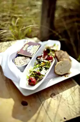 Mix beans, peppers, tomatoes, onion, salads and dressing. Serve tuna in a can with the Nice salad and a baguette