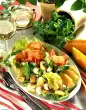 Cook the lentils in boiling water for about 20 minutes. Season with salt shortly before the end of the cooking time. Drain on a sieve. Peel and cut the onions into eighths. Clean peppers and zucchini and cut into strips.