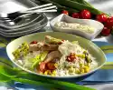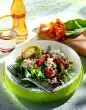 Drain the artichoke hearts and, depending on the size, halve or quarter them. Clean, wash and halve or quarter the tomatoes. Clean, wash and drain the lettuce and pluck into bite-sized pieces