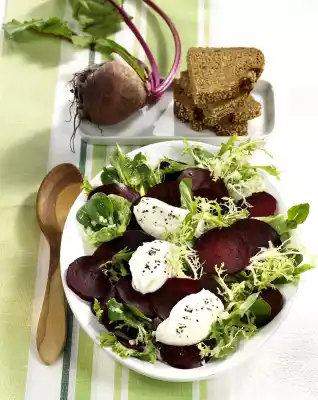 Salads clean, wash, shake dry, pluck smaller. Slice or cut beetroot. Mix everything with marinade