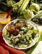 Mix chicory, salad vegetables and citrus fillets. Arrange on a plate with salad dressing and warm turkey strips. Sprinkle with chives. Serve with wholemeal bread