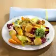 Peel the shallots and cut into fine slices. Cut the trout fillets into small pieces. Clean and wash lettuce hearts, pluck them a little smaller. Wash and quarter apples, cut out core. Cut the fruit flesh into fine slices and steam briefly in lemon juice. Drain the pumpkin.