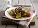 Wash the potatoes and cook in boiling water for about 20 minutes. Drain potatoes, quench, drain and quarter them. Quarter peppers, clean, wash and cut into bite-sized pieces. Clean, wash and cut spring onions into rings. Mix vinegar, broth and mustard, season with salt, pepper and sugar. Fold in 6 tablespoons of oil. Wash chives, dab dry, chop finely and stir in.