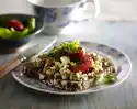 Mix horseradish, cream cheese and milk. Season with salt. Wash the cucumber, grate dry and cut into slices. Wash salad and shake dry. Spread each slice of toast with half of the cream cheese mixture.
