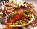 Season skewers with pepper. Arrange 2 skewers with lamb's lettuce on each plate. Sprinkle with pink berries. Garlic sauce tastes good with it.