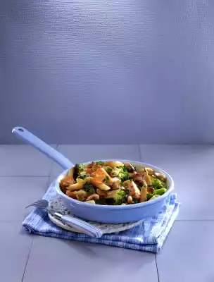 Drain the pasta and broccoli, add to the fish and fry for about 2 minutes. Wash parsley, shake dry, pluck leaves from the stalks and chop. Pour sauce over the finished pan and sprinkle with cashew nuts and parsley.