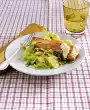 Wash the parsley, shake dry. Pluck off leaves and chop finely, except for something to garnish. Mix half of the salmon cubes, bread spread and parsley with the whisks of the hand mixer. Stir in 2-3 tablespoons of the wine stock and season with salt and pepper. Fold in remaining salmon cubes