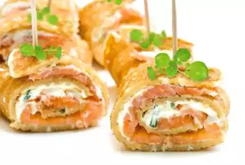 When the horseradish mousse becomes firm, spread it on the crêpes. Place one slice of salmon on each. Carefully roll up the crêpes, then wrap them in cling film and then in aluminium foil. Refrigerate for 3 to 4 hours.