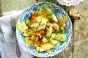 For the vegetables, cook the beans in boiling salted water for 3-4 minutes. Then drain and rinse with cold water. Squeeze the beans out of their skin. Wash lemon hot, rub dry. Grate one half of the peel thinly. Squeeze the lemon. Peel onion and chop finely. Wash mint, shake dry and chop.
