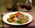 Peel the orange so that the white skin is completely removed. Remove the fillets with a sharp knife between the parting skins. Squeeze the juice out of the parting skins and collect it. Melt 15 g fat in a pot.