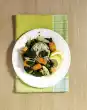 Melt 10 g fat in the pot. Swivel the broccoli in it. Sprinkle with almonds. Add leek to the pasta 2 minutes before the end of cooking time. Drain the noodles and leek, drain and fold in the orange fillets.