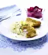 Clean, wash and chop the leek and chicory. Cook both in 1/8 l water for 3-4 minutes. Lift out and fill into 4 small greased or 1 large casserole dish