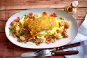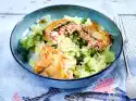 Wash parsley, shake dry, pluck off leaves and chop finely. Pluck salmon with your fingers into small pieces. Mix with mashed potatoes, 2 tbsp. boiled fish stock with shallots, parsley, lemon peel and juice. Season to taste with salt and pepper. Form approx. 18 fish cakes from the mixture and turn them into panko.