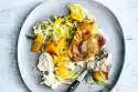 Wash the potatoes and boil in water for about 20 minutes. Wash fish, pat dry, season with salt and pepper. Peel and finely dice the shallots.