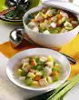 Sauté the fennel in hot fat. Deglaze with 1/4 l water, bring to the boil, stir in broth. Simmer for about 5 minutes. Add cream and Pernod, thicken. Stir in fennel green. Season to taste with salt, pepper and lemon