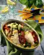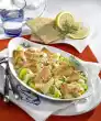 Heat 1 tablespoon of oil. Brown the rest of the onions in it. Deglaze with 100 ml water, add broth. Stir yoghurt and starch until smooth. Stir into the stock and bring to the boil while stirring briefly (!). Season to taste with 1-2 tbsp lemon juice, salt, pepper and sugar. Stir in lemon zest. Arrange everything, garnish with lemon. Served with: boiled potatoes