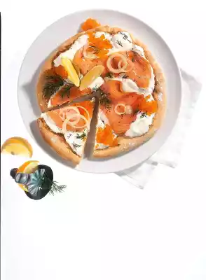 Cut salmon into bite-sized pieces. Peel onion and cut into thin rings. Wash the dill, dab dry and chop. Spread the still hot pizza bases with the sour cream. Cover with salmon, onion rings and trout caviar. Sprinkle with dill. Arrange lemon wedges on top