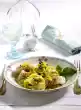 Season fish with salt and place on a baking tray lined with baking paper. Spray the puree onto it in a spiral shape. Bake in a preheated oven (electric cooker: 200 °C/recirculating air: 175 °C/ gas: level 3) for 20-25 minutes until golden brown