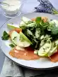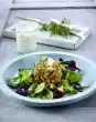 Remove the pistachios from their shells and chop them coarsely. Mix honey, mustard, orange juice and zest, season with pepper. Wash the dill, shake dry, pluck off the pennants and chop finely, except for a little garnish.