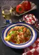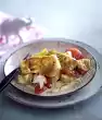 Cook in the preheated oven (electric cooker: 200 °C/ gas: level 3) for about 20 minutes. In the meantime, cut the remaining shallots into slices. Clean, wash and quarter the tomatoes. Remove seeds.