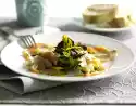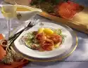 Wash the salmon, dab dry and cut into 4-6 pieces. Sprinkle with salt, cover each with 1 slice of lemon and tie up with kitchen string. Put the fish in a cool place and let it simmer. In the meantime clean the savoy cabbage, cut into quarters and cut out the stalk. Cut cabbage into small pieces, wash and drain well. Peel and finely chop the onion. Heat the lard.