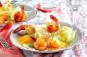 For the Coleslaw Chinese cabbage clean, wash and cut into fine strips. Clean and wash spring onions and cut them into thin rings. Wash, quarter, core and thinly slice the apples. Mix the prepared salad ingredients with half of the marinade and cover and chill.