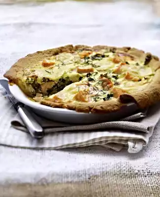 Pre-bake the dough in a preheated oven (electric cooker: 200 °C/ convection oven: 175 °C/ gas: level 3) for approx. 15 minutes. Mix egg-cream-fraîche, fish and savoy cabbage and spread in the tart. Spread the cheese on top. Bake on the lower rack at the same temperature for approx. 40 minutes. Remove the tart and sprinkle with the remaining dill.