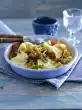 Defrost the prawns if necessary. For the salsa, peel and coarsely chop the garlic. Rinse and drain capers and anchovies. Wash the herbs, shake them dry and chop the leaves coarsely. Put anchovies, capers, herbs, half garlic and 7 tbsp. oil in a high mixer.