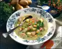 Add stock and cream and bring to the boil once. Stir in sauce thickener and bring to the boil again. Season with salt and lemon pepper. Drain the pasta and chill in cold water. Drain. Arrange two chicken fillets each with noodles and sauce on a plate