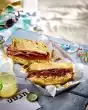 Cut out two circles (approx. 10 cm in diameter) from each puff pastry sheet. Put some filling in the middle. Brush the edge of the pastry with water. Beat the dough over the filling and press the edges together with a fork.