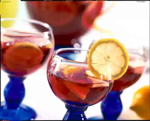 Add sugar and brandy. Top up with wine and soda water. Place in the refrigerator for at least 1 hour. Serve with ice cubes if necessary.
