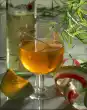 Wash the lemon and orange and cut into slices. Wash apple, quarter it, remove core. Cut apple quarter crosswise into slices. Put the lemon and orange slices with the apple slices in a large glass jug.