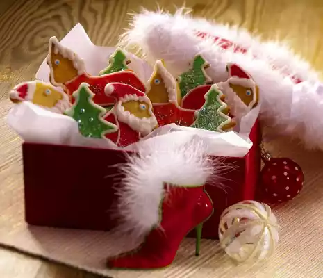 Quickly mix the sugar, vanilla sugar, butter in flakes, flour, egg and gingerbread spice with the dough hooks of the hand mixer to a smooth dough. Wrap in foil and chill for about 30 minutes. Roll out the dough on a floured work surface and cut out 12 rocking horses (10 x 11 cm), Christmas trees (9 x 6 cm) and Santa Clauses (10.5 x 7 cm). Place on 3 baking trays lined with baking paper. Bake the trays one after the other in a preheated oven (electric cooker: 175 °C/ convection oven: 150 °C/ gas: level 2) for 12-15 minutes. Remove cookies from the oven and let them cool down on a cake rack.