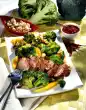 Then season with salt and pepper. Arrange chicken skewers on a plate, bulgur and sauce in a small bowl. Garnish as desired with lemon, mint and pepper.