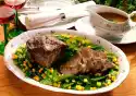 Remove all skins and fat from the meat. Clean, wash and chop the greens. Bring vinegar, 1/8 litre water, porcini mushrooms and spices to the boil and allow to cool. Put meat and soup vegetables in a bowl and pour wine and stock over them.