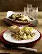 Whisk milk, cream and eggs. Season with salt and pepper. Pour over the casserole. Crumble the toast roughly. Roast in hot butter until golden brown, sprinkle over the top. Bake in the preheated oven (electric cooker: 200 °C/circulating air: 175 °C/gas: level 3) for 25-30 minutes until golden brown