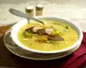 Season to taste with salt, cayenne pepper and nutmeg. In the meantime, wash the chicken fillets, dab dry and season with salt and pepper. Heat the remaining oil in a pan and fry the chicken fillets in it for about 6 minutes while turning over medium heat. Wash parsley, dab dry, pluck and cut into fine strips. Bring the soup to the boil and add the remaining pumpkin. Cut open the chicken fillets. Spread sauerkraut-pumpkin soup with chicken fillet slices in soup plates and drizzle with pumpkin seed oil. Sprinkle with parsley and pumpkin seeds